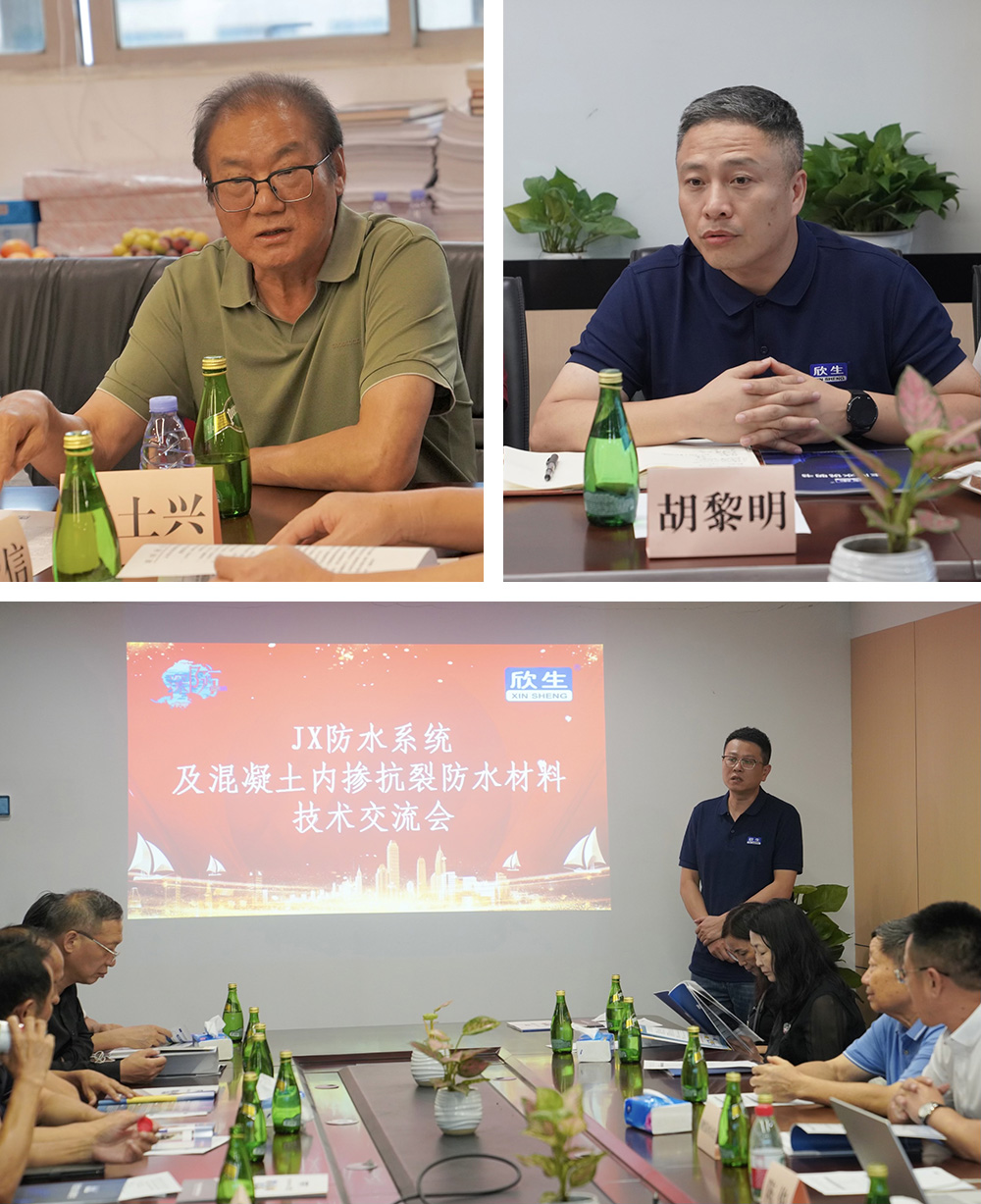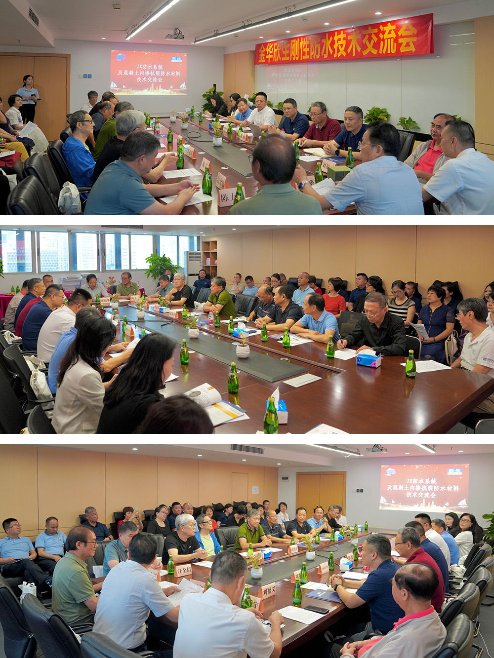 深圳市防水行業(yè)協(xié)會瞿培華會長主持交流會并講話;金華欣生陳土興董事長致歡迎辭、胡黎明副總經(jīng)理介紹企業(yè)發(fā)展、陳俊總工技術報告,深圳防水專家團隊40余人參加活動。